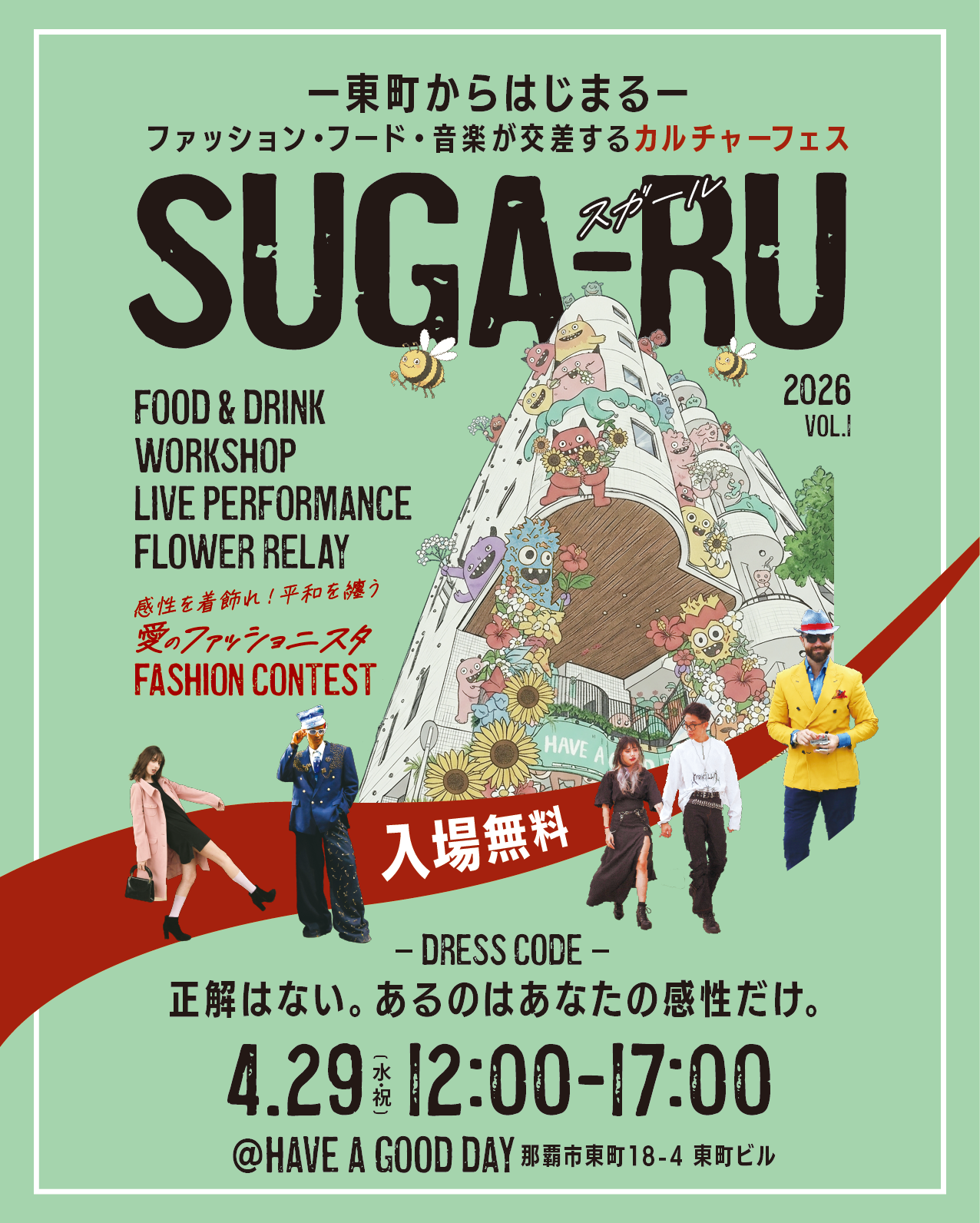 沖縄 イベント|4月29日開催SUGA-RU|東町HAVE A GOOD DAYで楽しむ注目のファッション・フード・音楽フェス